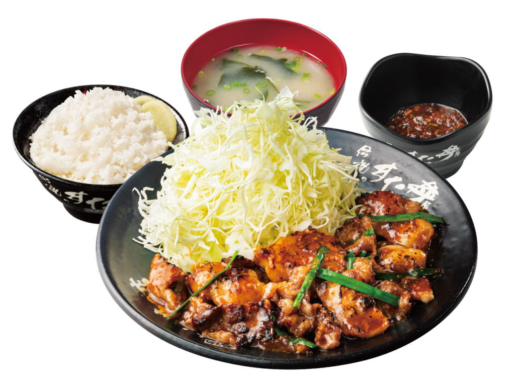 ご飯とおかずを別々で召し上がりたいというお客様のために、定食スタイルもご用意しております。また、元祖盛り(並)の約2/3の量である「腹八分目」もご用意しております。さらに、ボリュームを求める方に向けて、並盛の2倍の肉を豪快に盛り付けた『肉W盛り』もご用意しております。